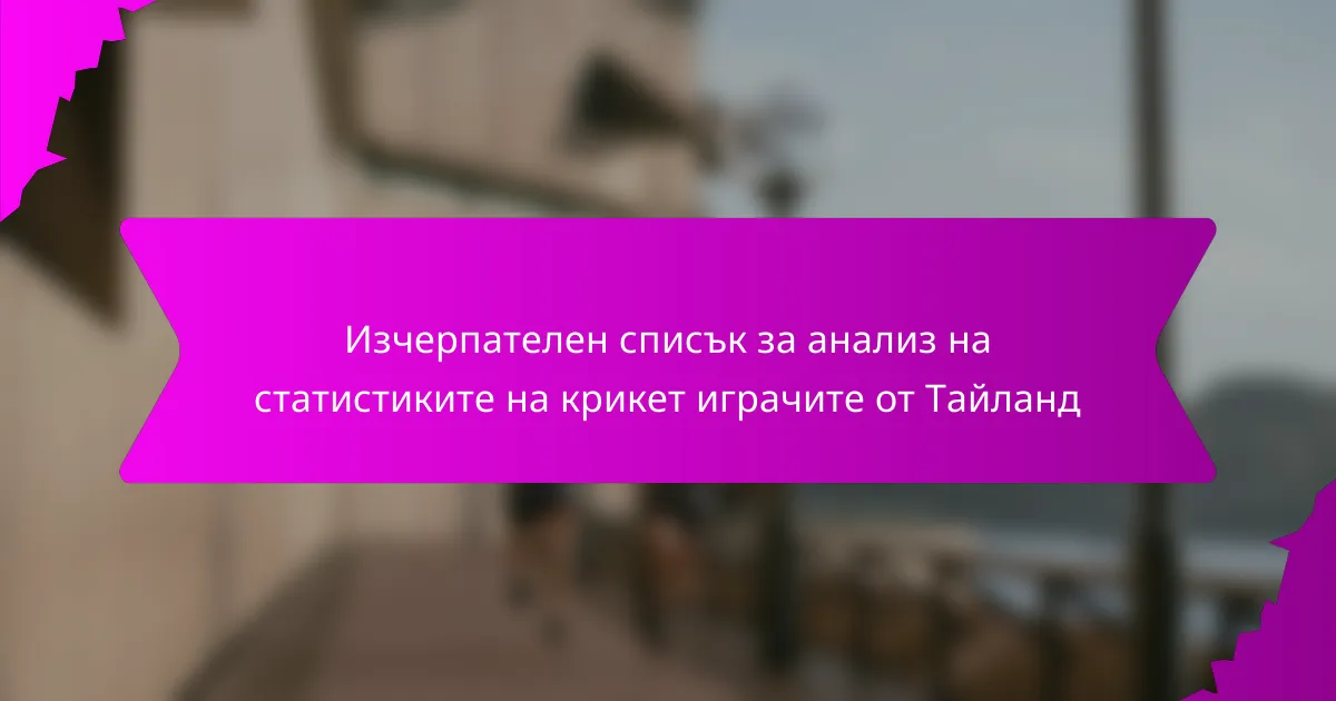 Оценяването на представянето на играчите по крикет в Тайланд включва анализ на различни метрики и контекстуални фактори, които влияят на тяхната игра. Ключовите аспекти включват статистически данни, историческо представяне и сравнения с връстници, които предоставят цялостен поглед върху способностите на играча.