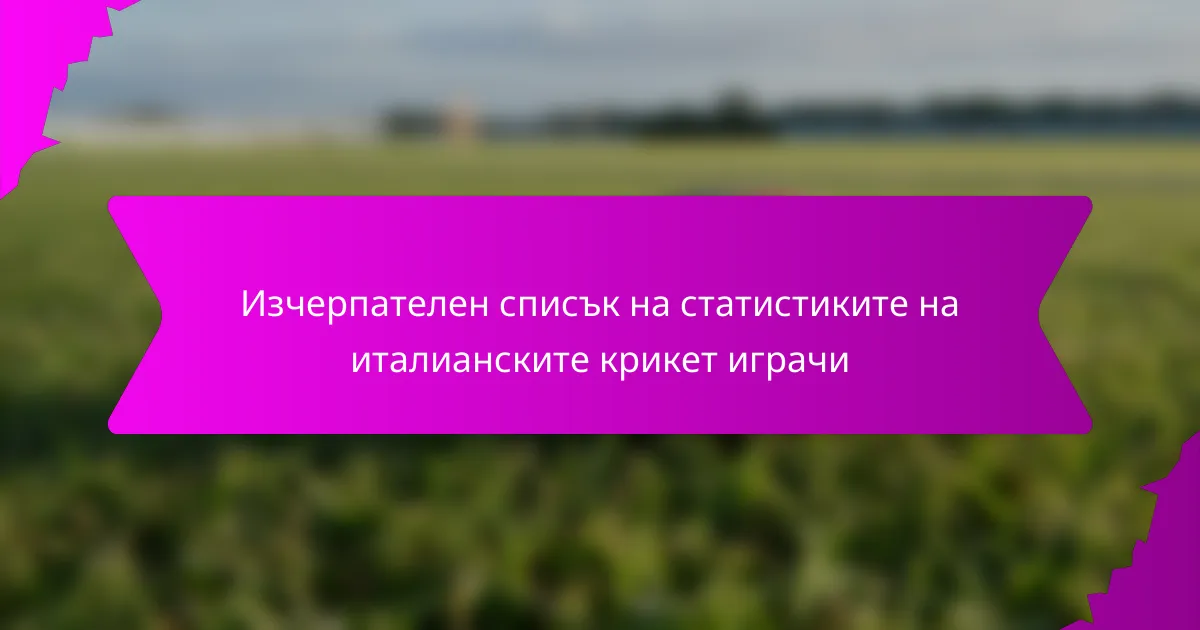 Ключовите статистики на италианските крикет играчи обхващат различни показатели за представяне, включително средни стойности за батинг, средни стойности за боулинг, статистики за полевата игра, участия в мачове и записи. Тези статистики предоставят информация за приноса и ефективността на играчите в спорта.